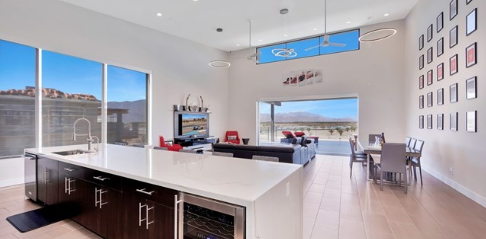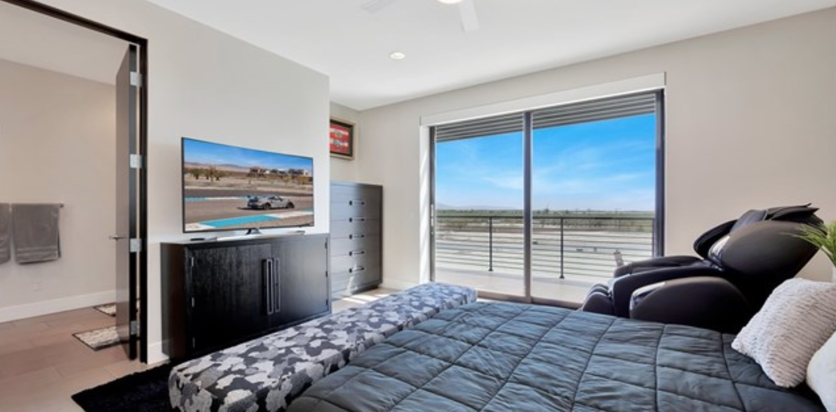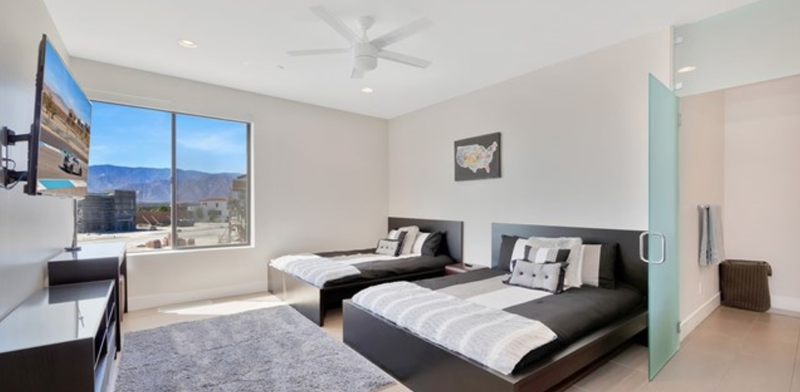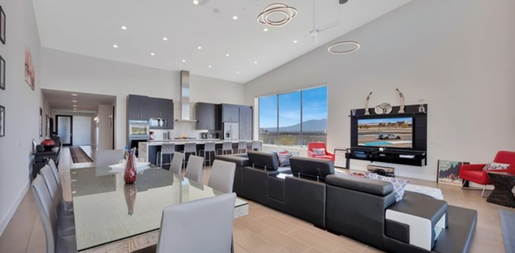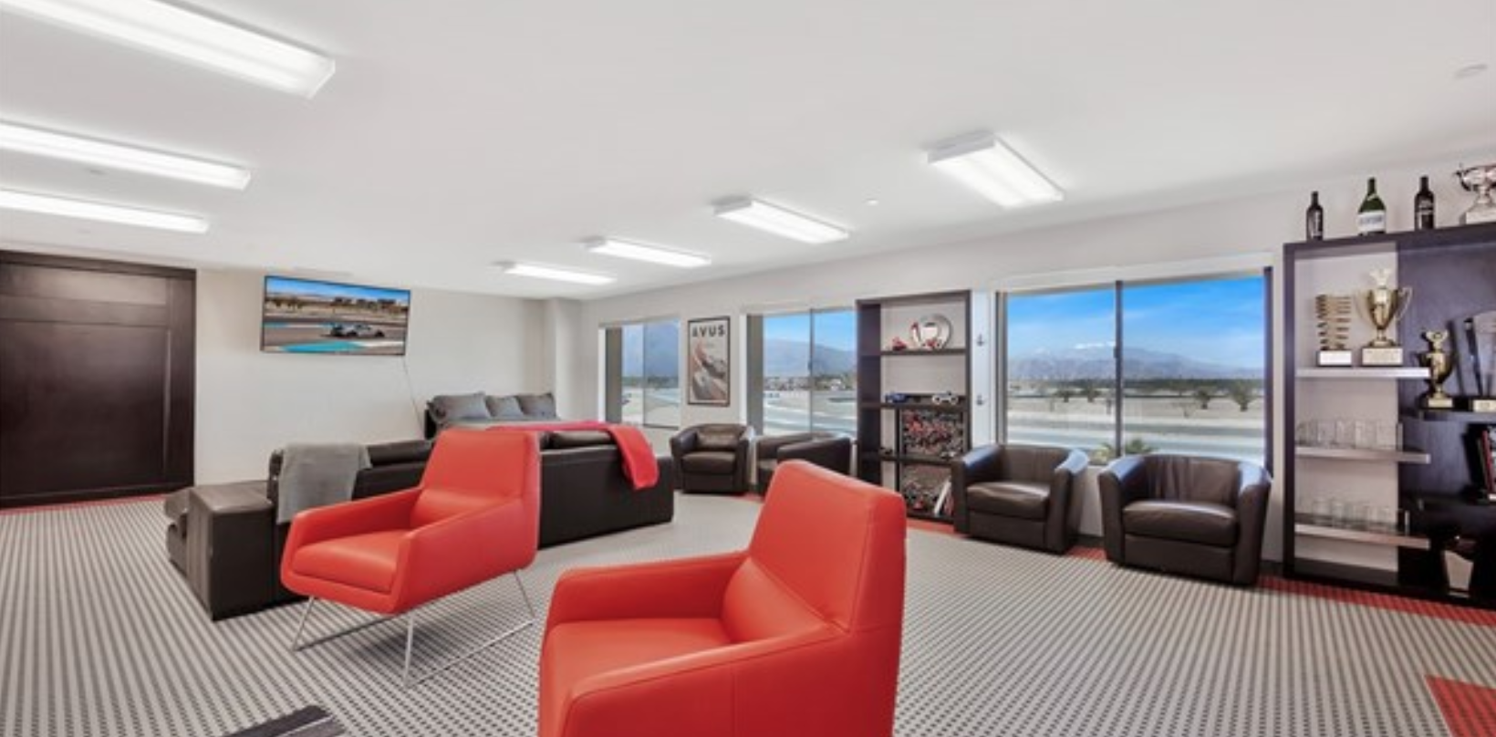 This Luxury Villa features 5 bedrooms, 8 bathrooms, an incredible garage for up to 26 cars, and is located in The Thermal Club – the ultimate private Motorsports facility, with access to 5.1 miles of private pavement and luxury amenities for members. The Residence has been custom built in a duplex style, with a 3-bedroom owner’s unit on one side, and a 2-bedroom guest unit on the other, each with tastefully appointed kitchens and bathrooms, and spacious living areas – ideal for privacy and entertaining alike. Both sides are connected by a sweeping balcony overlooking the North Palm Circuit, with panoramic desert and mountain views. The Residence is located above the two-story garage, accessible by stairs or elevator. The Garage features space for up to 26 cars, two 10,000 lb rotary lifts, space for tools and equipment, an office/storage room, surround sound, Wi-Fi, climate control, ORCO Block construction, crew bathroom with shower and stack-able washer and dryer. The garage also features a spacious mezzanine with three windows overlooking the track, weather tech floors, wall bed, and a well-equipped gym with Rogue weights and rack, Peloton bike, Water Rower, and Woodway Curve treadmill. This Villa is an absolute must-see.