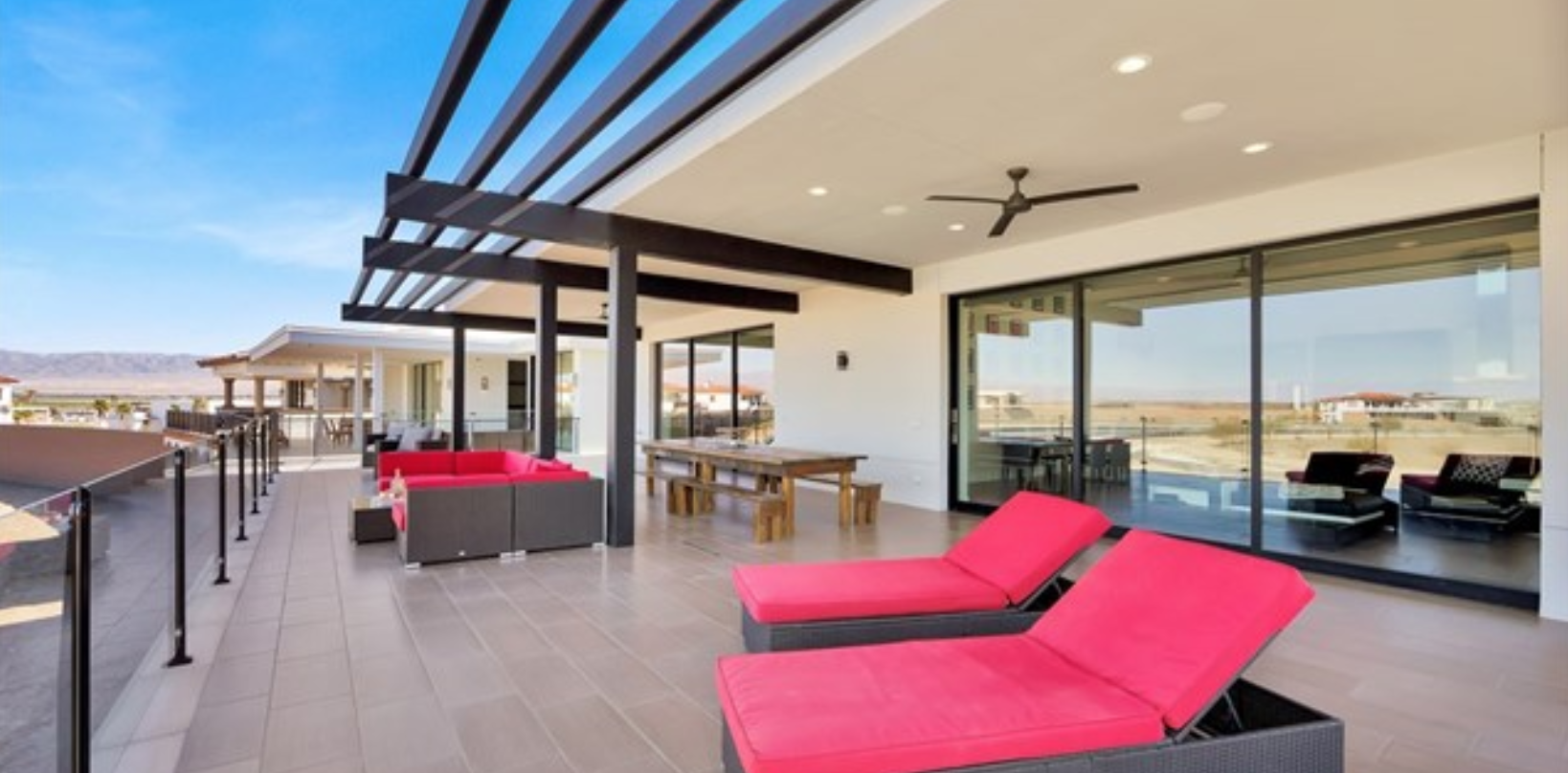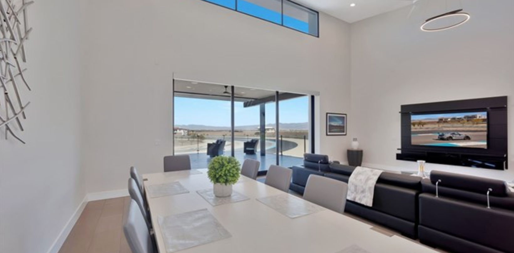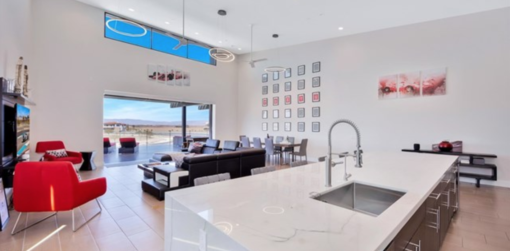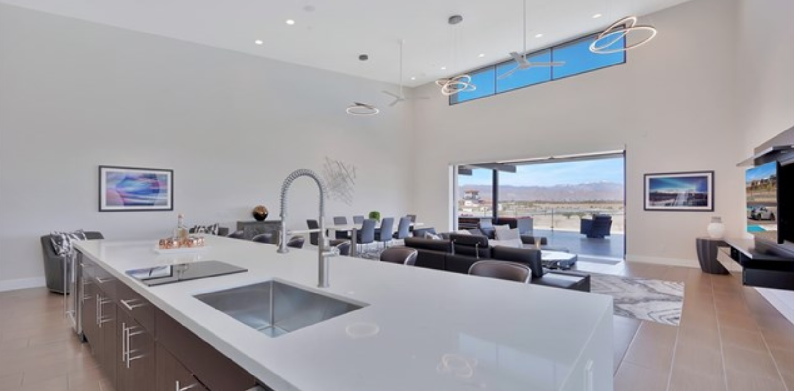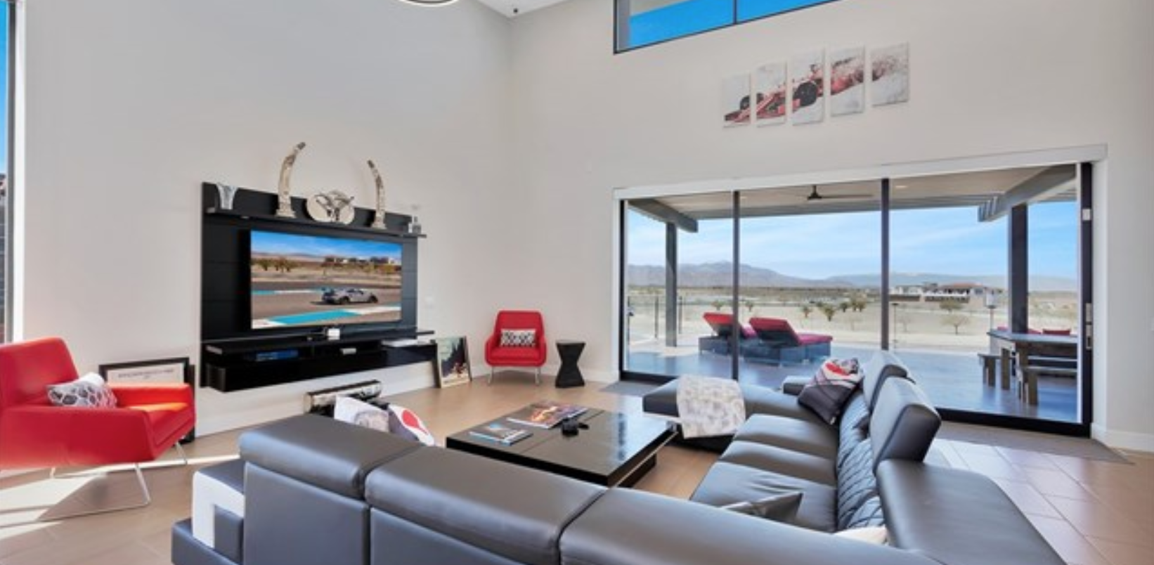 This Luxury Villa features 5 bedrooms, 8 bathrooms, an incredible garage for up to 26 cars, and is located in The Thermal Club – the ultimate private Motorsports facility, with access to 5.1 miles of private pavement and luxury amenities for members. The Residence has been custom built in a duplex style, with a 3-bedroom owner’s unit on one side, and a 2-bedroom guest unit on the other, each with tastefully appointed kitchens and bathrooms, and spacious living areas – ideal for privacy and entertaining alike. Both sides are connected by a sweeping balcony overlooking the North Palm Circuit, with panoramic desert and mountain views. The Residence is located above the two-story garage, accessible by stairs or elevator. The Garage features space for up to 26 cars, two 10,000 lb rotary lifts, space for tools and equipment, an office/storage room, surround sound, Wi-Fi, climate control, ORCO Block construction, crew bathroom with shower and stack-able washer and dryer. The garage also features a spacious mezzanine with three windows overlooking the track, weather tech floors, wall bed, and a well-equipped gym with Rogue weights and rack, Peloton bike, Water Rower, and Woodway Curve treadmill. This Villa is an absolute must-see.